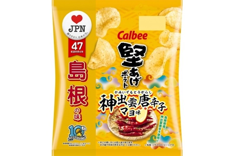 カルビー株式会社から、島根県雲南市特産の「神出雲唐辛子」を使用した『堅あげポテト 神出雲唐辛子マヨ味』が数量限定・期間限定で2020年7月13日(月)より、島根・鳥取・岡山・広島・山口・徳島・香川・愛媛・高知(9県)で発 …