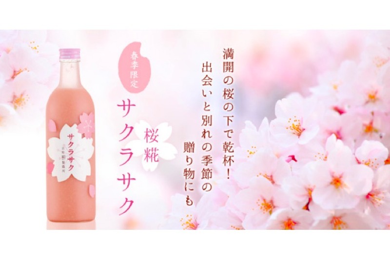 より春爛漫にリニューアル!サクラ風味甘酒「サクラサク」が販売 1枚目の写真・画像