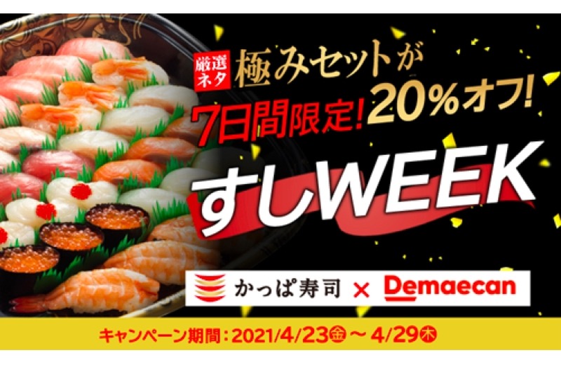 かっぱ寿司「極みセット」が20%OFF!出前間の「すしweek」キャンペーンがお得