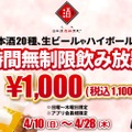 価格は¥1,000!日本酒原価酒蔵で日本酒などの"時間無制限飲み放題"開催 1枚目の写真・画像