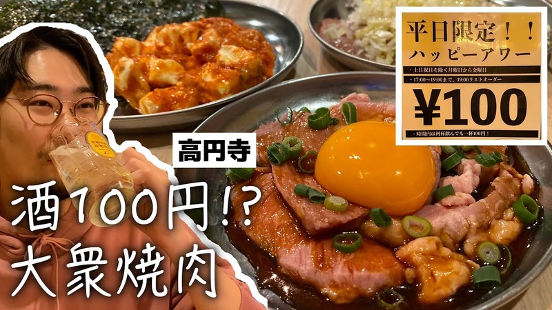 都内を中心に各地の酒場を巡っている、YouTuberなおたかさんのオススメ店を紹介する本企画。今回紹介するのは、高円寺駅から徒歩2分のところにある「大衆焼肉コグマヤ 高円寺店」。平日のハッピーアワーは角ハイボール、レモンサワー、チューハイが100円。さらにジンギスカンも250円というコスパの良さ!今日はたくさん飲んで食べていきます!