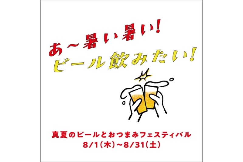 横浜モアーズから、「あ~暑い暑い!ビール飲みたい!真夏のビールとおつまみフェスティバル」が、2024 年8月1日(木)~8月31日(土)にて開催になります。